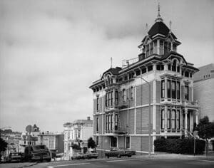 In 1948, the mansion was converted into a 14-unit apartment building. Over the next two decades, many of the units were rented to African-American musicians who performed in the neighborhood’s jazz clubs. Saxophonist John Handy was reportedly among the residents, although he later denied living there. In 1965, Charles Fracchia purchased the building as a residence but never moved in. The mansion was later mentioned in the book The Electric Kool-Aid Acid Test. It became home to The Calliope Company, a fifty-member collective.