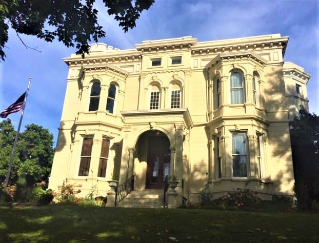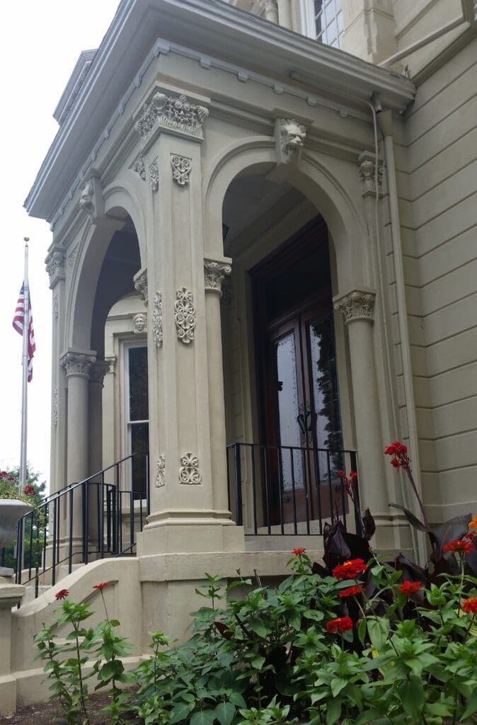 St. Joseph is known for an extensive collection of beautiful mansions built in the late 1800s, and the Wyeth Tootle Mansion at the corner of 11th and Charles Streets is a prime example. Built in 1879 by William and Eliza Wyeth, this 43 room mansion was designed to emulate the castles along the Rhine River in Germany. The Wyeth family only lived in the home for approximately 8 years before the home was sold to Kate Tootle. The Tootle family remained in the home until 1947 when it was purchased by William Goetz (owner of Goetz Brewery) to be used as the St. Joseph Museums. With three floors, a tower and more than 40 rooms, it stands today as one of the best examples of St. Joseph’s late 19th century wealth and opulence, featuring stunning woodwork, hand-painted ceilings and imported stained glass. The first floor of the Wyeth Tootle Mansion has been partially restored to its Victorian grandeur. Old photographs of each room help visitors visualize the interior as it was around 1900. Each room’s ceiling is impressively different, from the cherubs that float above the Louis XVI parlor to the dark rich colors that cover the Moorish room. Ornate parquet floors and walnut woodwork change from room to room. The upper stories contain museum exhibits.